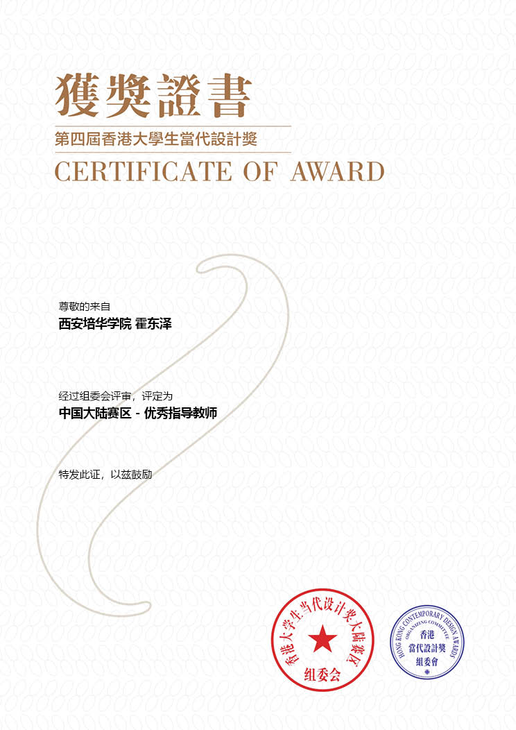 香港当代设计奖由香港艺术发展局指导,香港美术设计协会主办,赛事分为两个阶段分别为春季赛:香港大学生当代设计奖、秋季赛:香港当代设计奖,旨在通过赛事活动提高两地大学之间的艺术和设计互动,通过交流以提升设计、美术创作的整体水平。此次赛事仅面对两岸大学生进行征稿。我校师生积极响应,认真组织实施,并且取得优异成绩。
