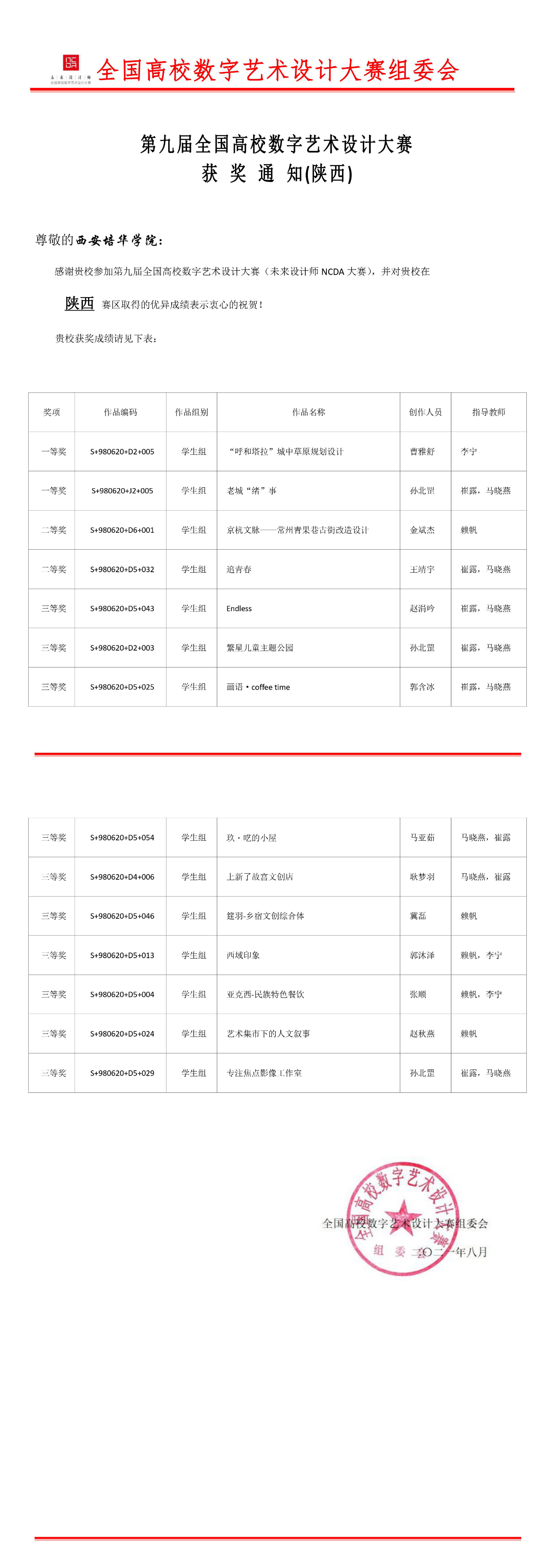 近日,第九届全国高校数字艺术设计大赛(NCDA)的评审工作全部结束,西安培华学院建筑与艺术设计学院环境设计专业多名学生在此次大赛中,表现优异,喜获佳绩。本届大赛共有1456所高校参赛,共征集119785幅作品,其中有国美、央美、清华美院等王牌美术院校的作品,在竞争如此激烈的情况下,环境设计专业学生斩获省级一等奖两名、二等奖两名、三等奖十名。