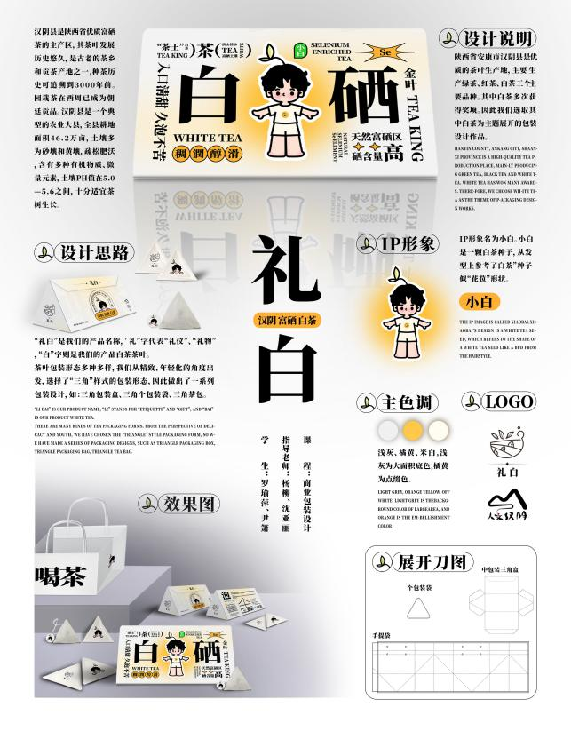 汉阴县是陕西省优质富硒茶的主产区,其茶叶发展历史悠久,是古老的茶乡和贡茶产地之一,这里主要生产绿茶、红茶、白茶三个主要品种。其中白茶多次获得奖项,故选取其中白茶为主题展开的包装设计作品。
