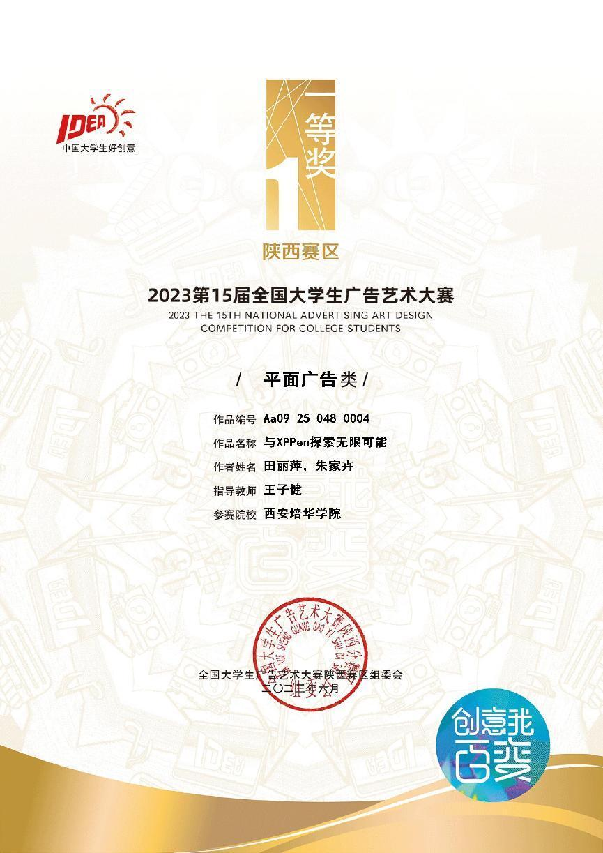 田丽萍、朱家卉作品《与XPPen探索无限可能》获得陕西省赛区一等奖