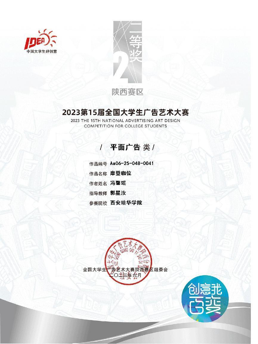 冯馨瑶 作品《摩登咖位》获得陕西省赛区二等奖