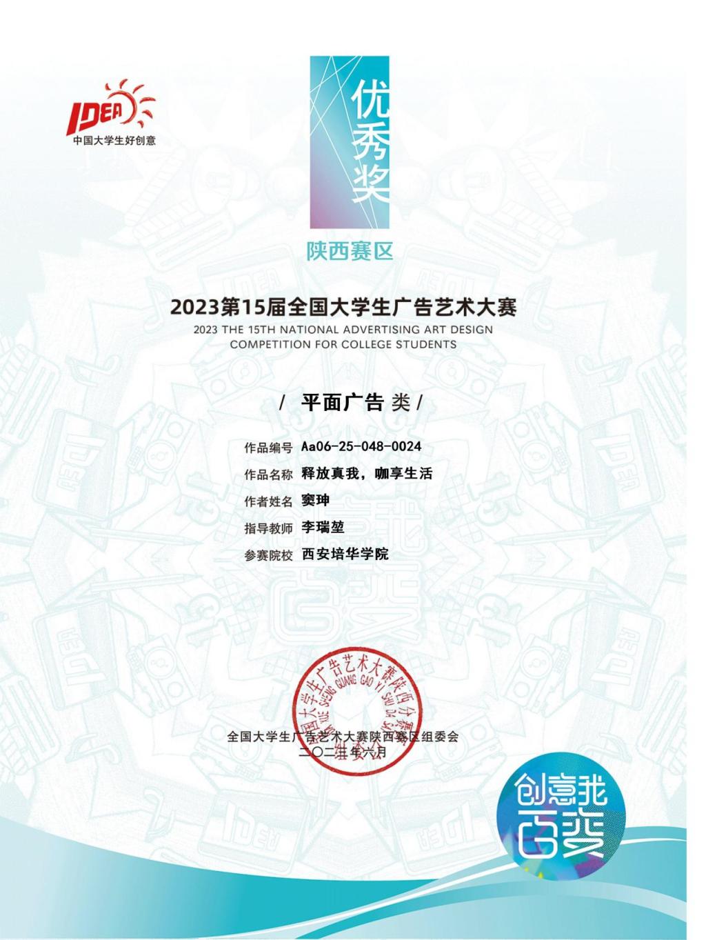 窦珅作品《释放真我,咖享生活》获得陕西省赛区优秀奖