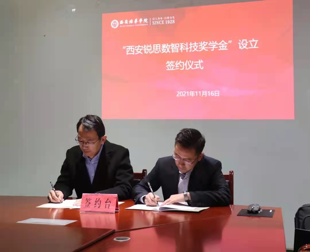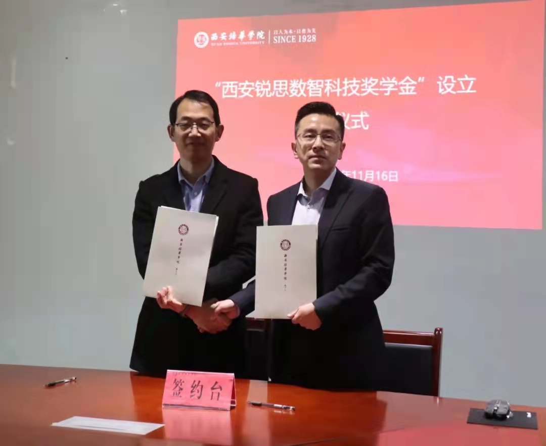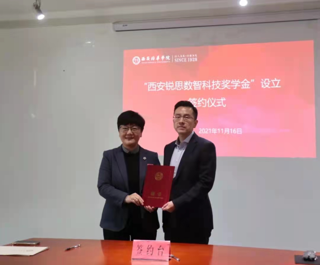 为实现校企双方资源共享,深化产教融合,11月16日上午,西安培华学院建筑与艺术设计学院与西安锐思数智科技股份有限公司(以下简称“锐思数智”)于培华学院汇知楼举行了企业奖学金设立签约仪式,并进行座谈交流。西安培华学院校长助理兼合作与发展办公室主任秦海峰、西安培华学院建筑与艺术设计学院常务副院长徐莹、党委宣传部部长校友服务与发展中心主任柳雨建筑与艺术设计学院党委书记兼行政副院长权勇太等领导及锐思数智总裁赵航、人力资源总监李敏等出席了仪式。