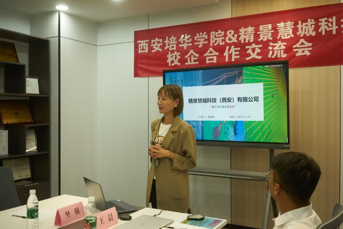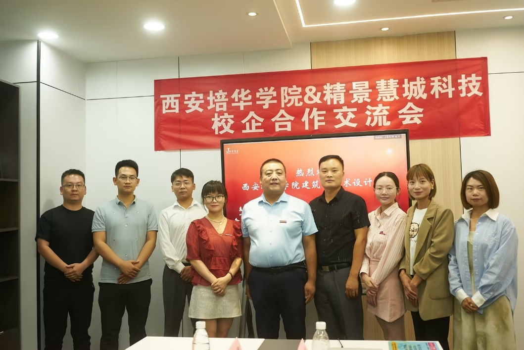 2023年7月7日下午,西安培华学院建筑与艺术设计学院党委副书记南斌红、土木工程系主任刘杰老师率队赴精景慧城科技(西安)有限公司开展参观调研。公司副总经理刘晓建、总经理助理林沁、销售经理寇盼盼,技术总监王晨对西安培华学院建筑与艺术设计学院领导一行来公司参观调研表示欢迎。