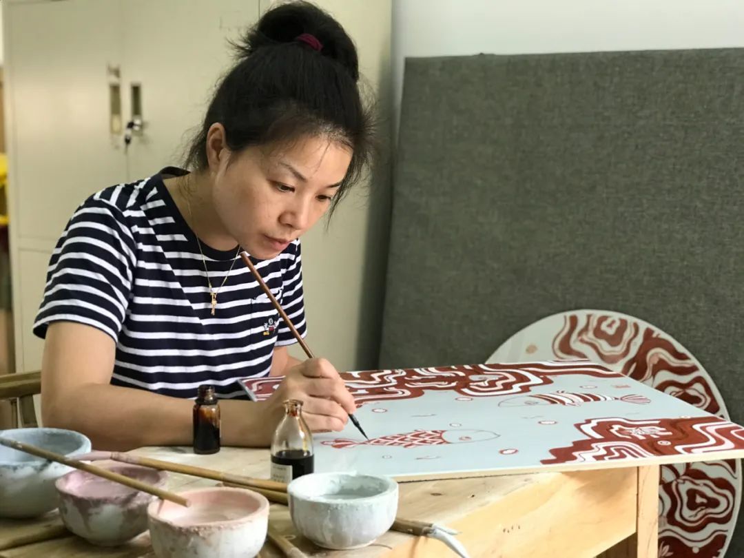 陶瓷红绿彩装饰从宋加彩工艺中分离出来而独树一帜,仅用红色、绿色来表现,具有强烈的民俗审美的特点,极具中国传统风格,红绿彩是在高温白釉或白地黑花瓷烧成后,在白釉上用红、绿、黄等彩勾画出纹饰,再入窑以800℃左右的低温烧成。因此也常称为“宋加彩”或“金加彩”。红绿彩瓷器物上常以白釉为主要底色,以洁白的釉色和大面积的红彩相配合。红绿彩瓷的色彩主色是红、绿、黄三色,但每种彩又有深浅不同的色阶。作者依然保留了传统工艺的红色、绿色,但丰富了绿色的色阶,将绿色配色成3种色相,分别是深绿、橄榄绿、湖绿,另外引入了黄色,和金色,从而得到了一种类似于传统红绿彩,而又有别于传统的一种全新的陶瓷红绿彩装饰。