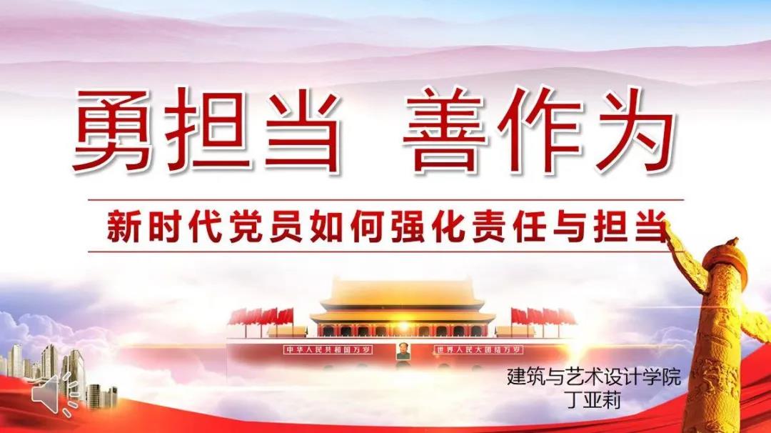 新时代呼唤堪当大任的新青年。习近平总书记曾经说过:“青年兴则国家兴, 青年强则国家强。青年一代有理想、有本领、有担当, 国家就有前途, 民族就有希望。”当代大学生党员作为青年中的佼佼者, 肩负着神圣而光荣的历史使命, 是党和国家的未来与希望。建筑与艺术设计学院学生第四党支部书记丁亚莉老师于2020年11月22日在育英楼3505教室开展“新时代党员如何让强化责任与担当”党课活动。本次班会由丁亚莉老师主持,我院学生第四党支部学生及大一积极分子学生参加了此次活动。