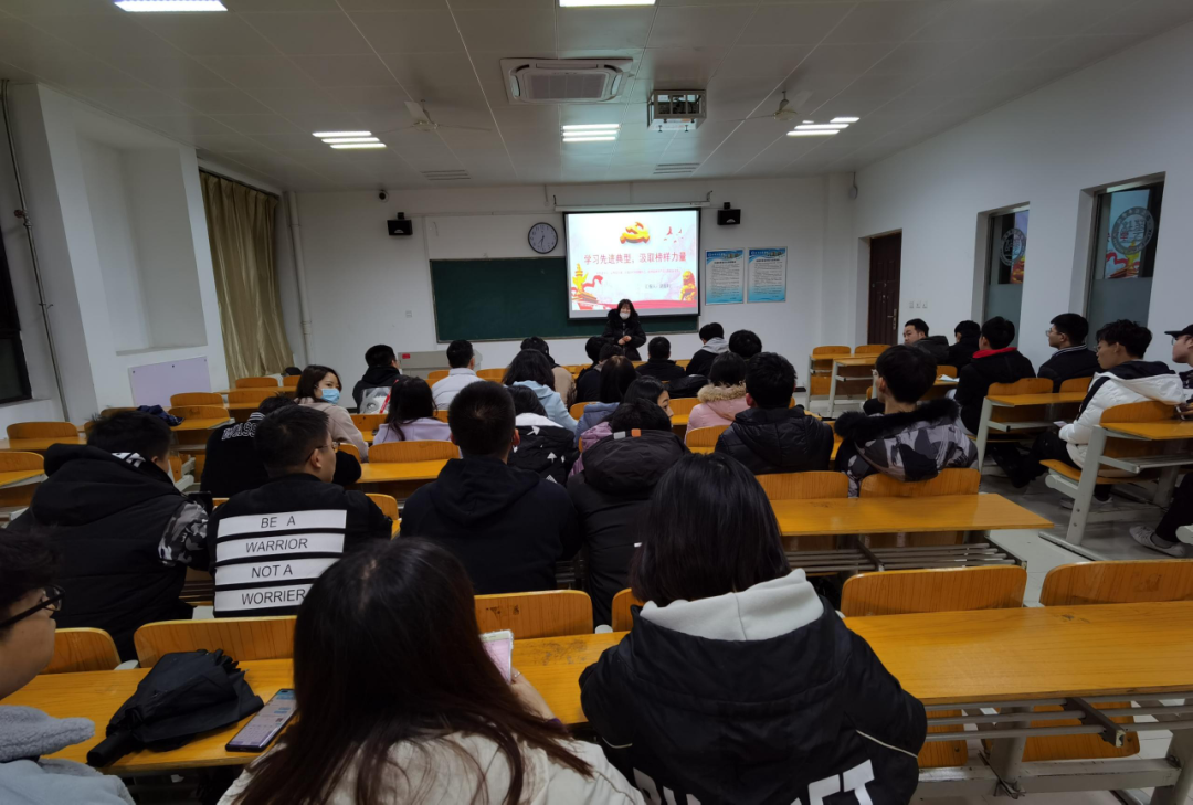 2020年11月22日,学生第二党支部书记赵煜柠组织学生第二党支部毕业年级的学生,以《学习先进典型,汲取榜样力量》为主题进行党课讲授。
