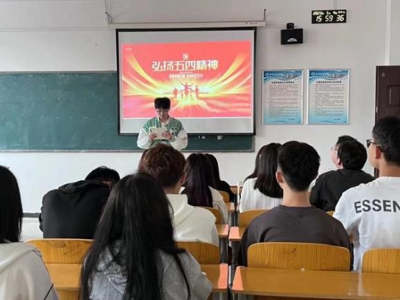 火红五月,青春飞扬,沐浴着中国特色社会主义新时代的春风,我们在贯彻落实党的二十大精神开局之年迎来了“五四”运动104周年,也迎来了第74个“五四”青年节。为深入学习贯彻习近平新时代中国特色社会主义思想和党的二十大精神,讴歌老一辈无产阶级革命家追寻真理、留学报国、奉献家国的爱国主义精神,引导广大青年传承五四精神,赓续红色血脉,汲取奋进力量,在“五四”青年节期间,建筑与艺术设计学院党委在汇知楼6403教室开展了“蓬勃青春力量,绽放时代芳华”主题经典诵读活动。