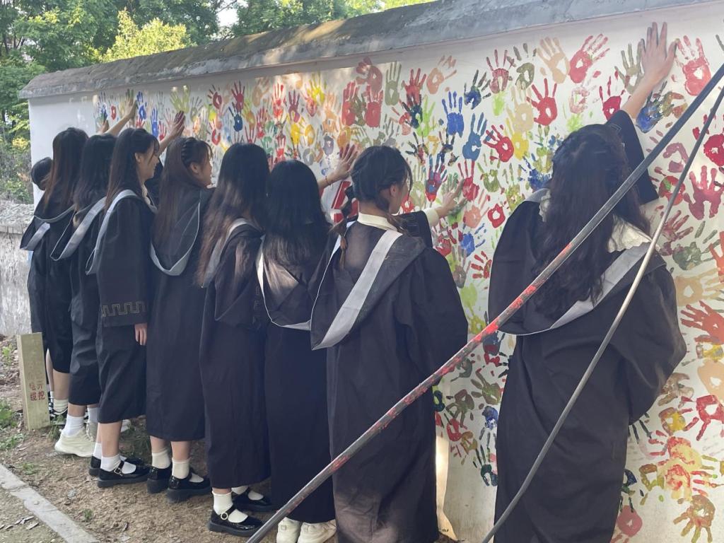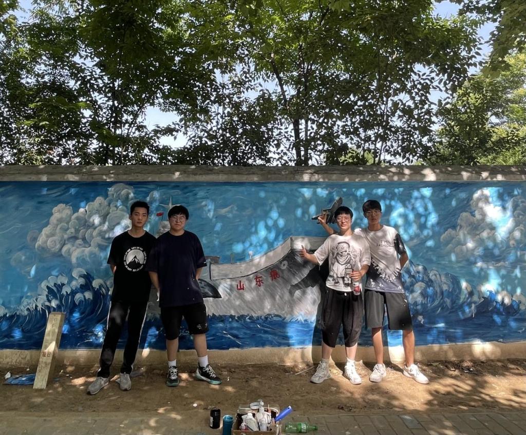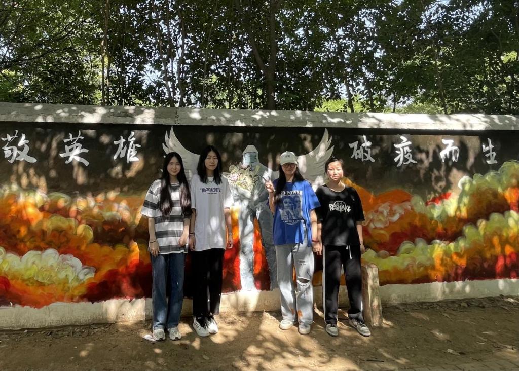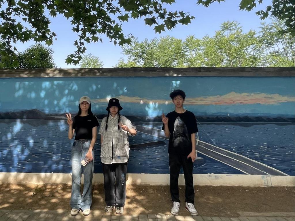 同学们兴致勃勃,积极参与,团结合作,贡献创作灵感,融入浓浓的爱校之情,将创意跃动于校园的墙面。在墙绘过程中,也有许多同学们驻足观赏,并与墙绘合影留念。