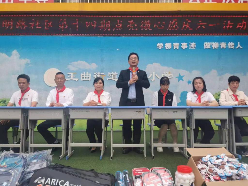 学院党委王飞书记和光明路社区党委孙书记对小朋友们寄予美好期望,祝愿小朋友们节日快乐,并送上书包、篮球、乒乓球、文具等慰问品。勉励小朋友们从小锻炼身体,养成强健体魄,认真学习,培养过硬本领,自强不息,努力成为德智体美劳全面发展的社会主义建设者和接班人。
