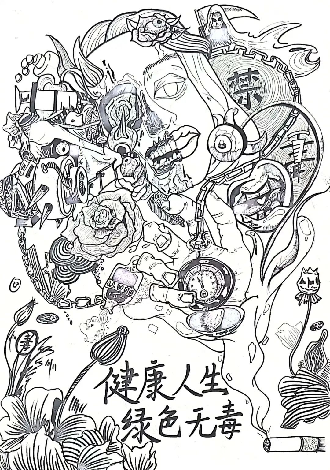 生命,是一朵鲜艳美丽的花朵;生命,是一条绚丽多彩的彩虹;生命,是一首悦耳动听的交响曲。然而,一旦跟一种“可怕的东西”沾染上半点关系,它就会变得黯然失色。为了使在校大学生成为有知识有文化的青年,具有明辨是非的能力,珍爱生命,掌握一定的禁毒防毒知识,增强防御毒品的能力,向大家全面宣传禁毒的意义,建筑与艺术设计学院党委举办禁毒海报征集活动,共收到学生组参赛作品60余幅,经过评审老师们的层层筛选,共赛出:一等奖一名,二等奖二名,三等奖五名,优秀奖六名,现在让我们一起欣赏一下大家的优秀作品吧!