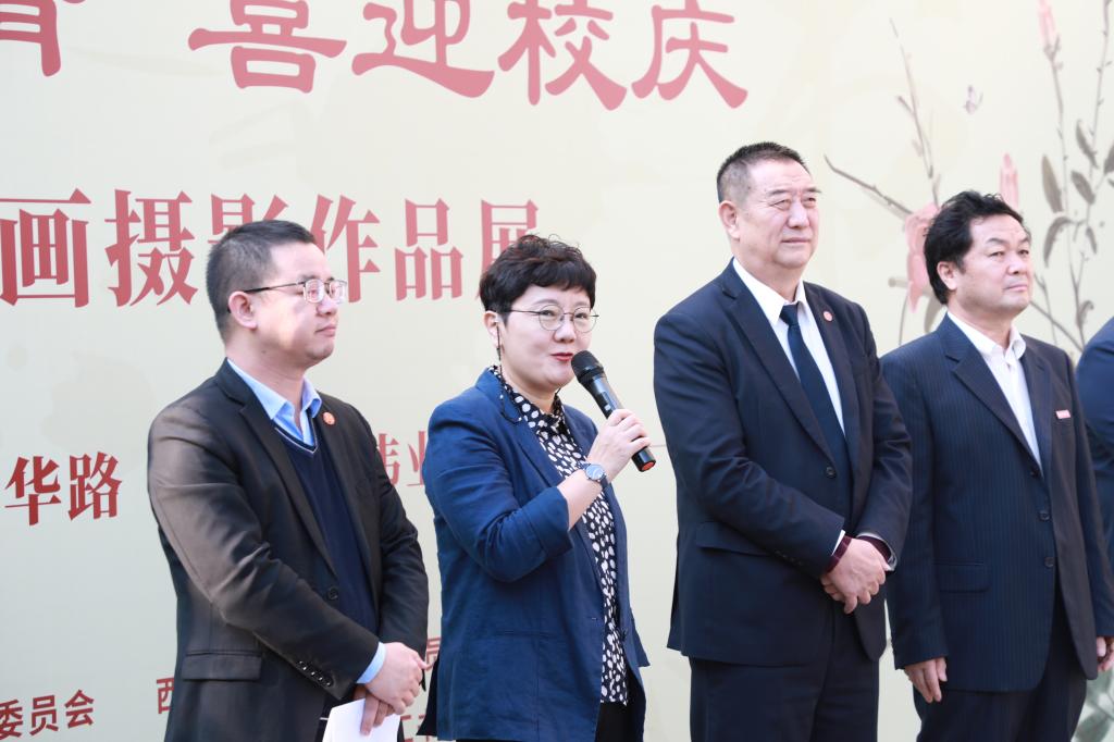 “重走培华路,再擎新伟业”。10月23日上午,为庆祝西安培华学院建校95周年,由校党委、校工委主办,党委宣传部、建筑与艺术设计学院、校教职工书画摄影俱乐部承办的“翰墨传情、喜迎校庆”——师生书画摄影作品展正式开幕。校党委副书记、工会主席徐国富、建筑与艺术设计学院常务副院长徐莹、党委书记兼行政副院长王飞、教学副院长王虎、院长助理刘清颖、办公室主任刘维娜、院党委副书记南斌红,以及学院师生代表出席开幕式。党委书记兼行政副院长王飞主持开幕式。