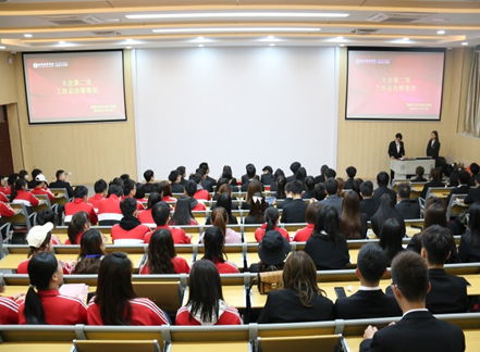 学生会主席团成员赵朝阳同学上台作2019——2020学年学生会总结及未来展望,向各个部门成员详细介绍工作任务及各部门的职能及新学期的主要活动计划,并且提出宝贵意见,激发全体成员的工作积极性和热情。除此之外,赵朝阳同学还强调了各部门之间应该加强交流,取长补短,向各方面全方位发展。