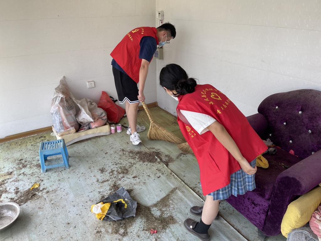(志愿者为小动物修理家园)