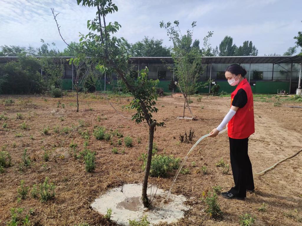 (志愿者正在浇树)