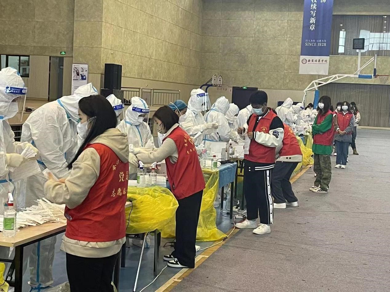 我院在第一时间收到核酸检测志愿者招募维护的通知,我院学生积极响应,义无反顾放弃国庆假期,踊跃加入建筑与艺术设计学院志愿服务活动,为我校的核酸检测志愿服务奉献力量。10月7日,开展区域的核酸检测,建筑与艺术设计学院的广大青年志愿者们不惧严寒,不怕困难,热心地提供各项暖心服务。以细心、耐心和责任心,坚守在抗击疫情的第一线,用行动展现了自己的初心。