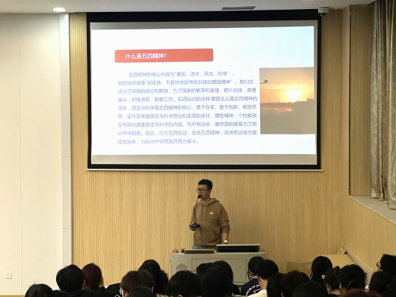 团委书记坚强老师对于五四精神主题团课的内容进行了细致的讲解,分别通过五四精神是什么、作为新时代青年如何去发扬五四精神、怎样去将五四精神发扬以及对于五四精神的自我感想这四个方面进行举例和分享。