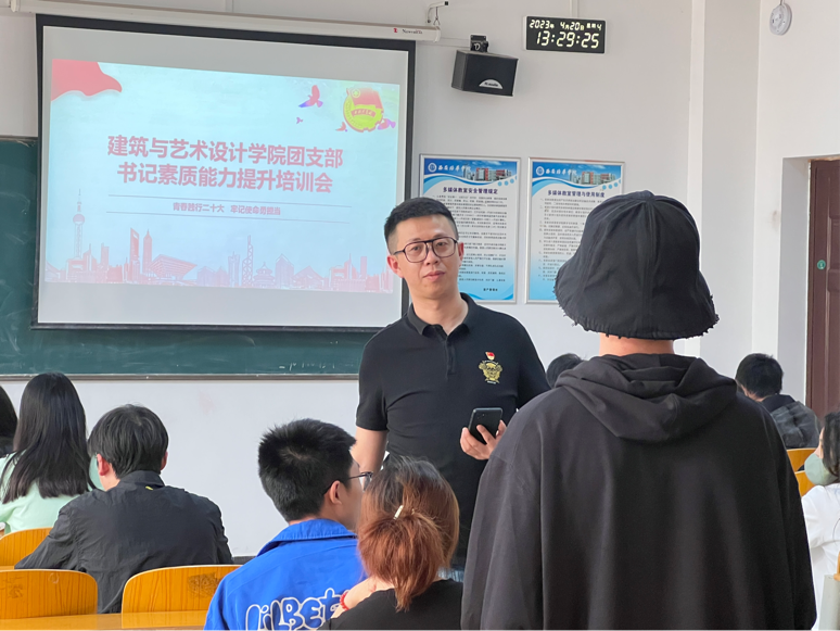 建筑与艺术设计学院团委书记坚强老师在本次工作部署会议中,分别通过青年大学习的落实与完成情况、对于各级支部团支书班级工作的要求、姜维之班创建以及如何开展落实各级各支部团员教育评议四个主要内容进行了细致的讲解。