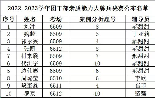 恭喜以上同学进入2022-2023学年团干部素质能力大练兵的决赛,期待同学在决赛演讲宣讲环节的精彩表现。