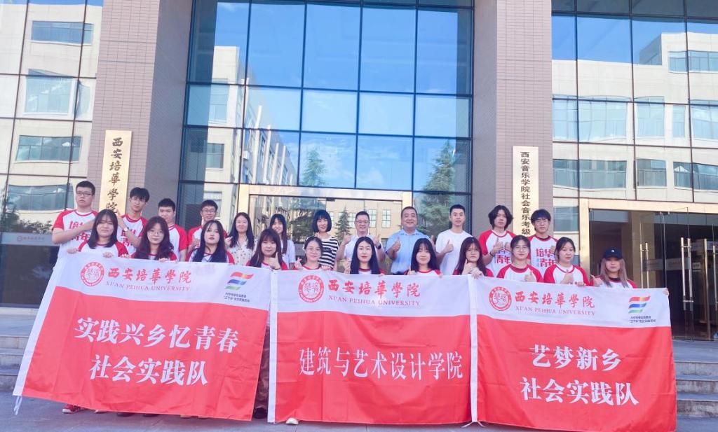 为贯彻落实习近平总书记关于青年工作的重要思想,深入学习习近平总书记在庆祝中国共产主义青年团成立 100 周年大会上的重要讲话精神,引导和帮助广大青年学生上好与现实相结合的“大思政课”,培养锻炼学生实践能力,西安培华学院建筑与艺术设计学院积极开展大学生志愿者暑期文化科技卫生“三下乡”社会实践活动。7月6日下午,在汇知楼前举行了“实践兴乡忆青春”社会实践队三下乡队伍的出征仪式。建筑与艺术设计学院党委书记兼行政副院长王飞,党委副书记南斌红,团委副书记吕文静以及指导教师丁亚莉、关小芳、李煜老师参加了本次出征仪式。社会实践团队于7月7日下午14:30正式启程。