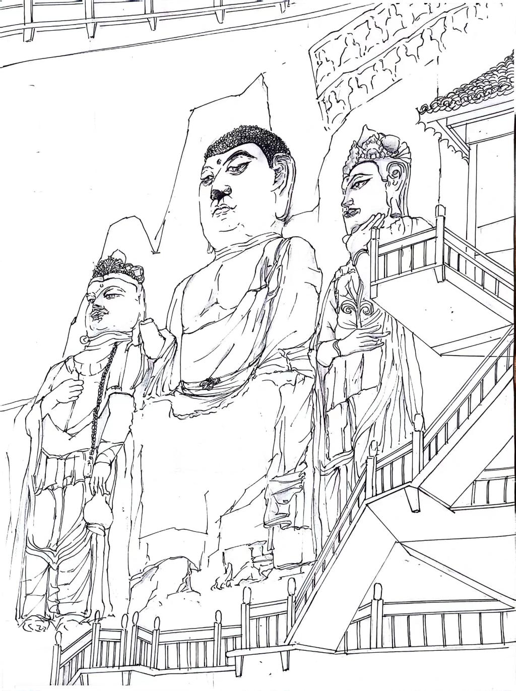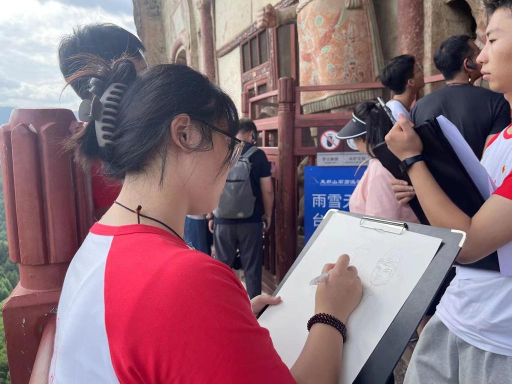 7月15日,同学们参观了麦积山旅游景区的石窟,亲身感受文物的风采,与“文物”对话不仅能丰富人们的精神文化生活,还能让我们感受到弦歌不辍的传承,及其思接千载的心绪,触摸博大精深的文明,从而更加坚定文化自信。同学们通过绘画来展现文物。