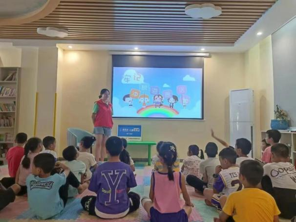 建筑美育童心志愿队到达幼儿园后首先与小朋友们开展了破冰游戏,缓解了志愿者与小朋友的尴尬陌生的关系,成立心理咨询热线和手拉手活动,志愿者与孩子们的“一帮一”搭配,同时赠送礼品。志愿者们进入班级中去融入孩子们的日常学习中,辅助老师上课下课后,课后也会辅导孩子们的功课作业,进一步达到打开留守儿童心扉,拉近志愿者与孩子们之间的距离、增进感情。