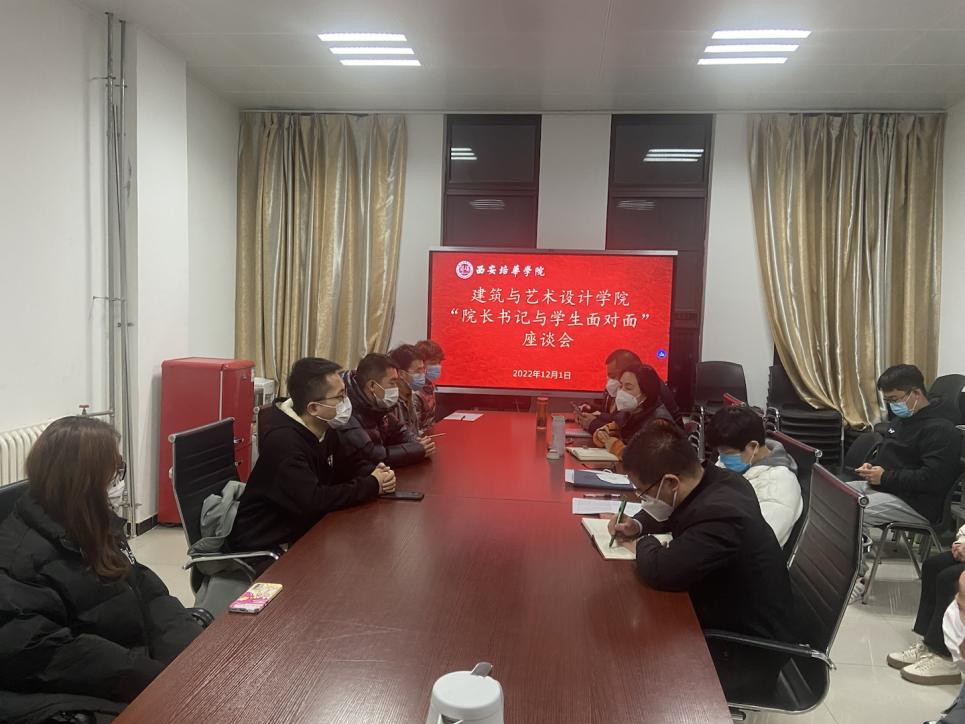 为更好地了解学生学习和生活,倾听学生心声,建筑与艺术设计学院于2022年12月1日、12月2日分两批次在汇知楼三楼会议室举行“建筑与艺术设计学院院长书记与学生面对面座谈会”活动。建筑与艺术设计学院常务副院长徐莹、党委书记兼行政副院长王飞,党委副书记南斌红,院长助理刘清颖,教学科办公室主任刘维娜,教学科研干事张喻涵及各年级学生代表参加本次活动。