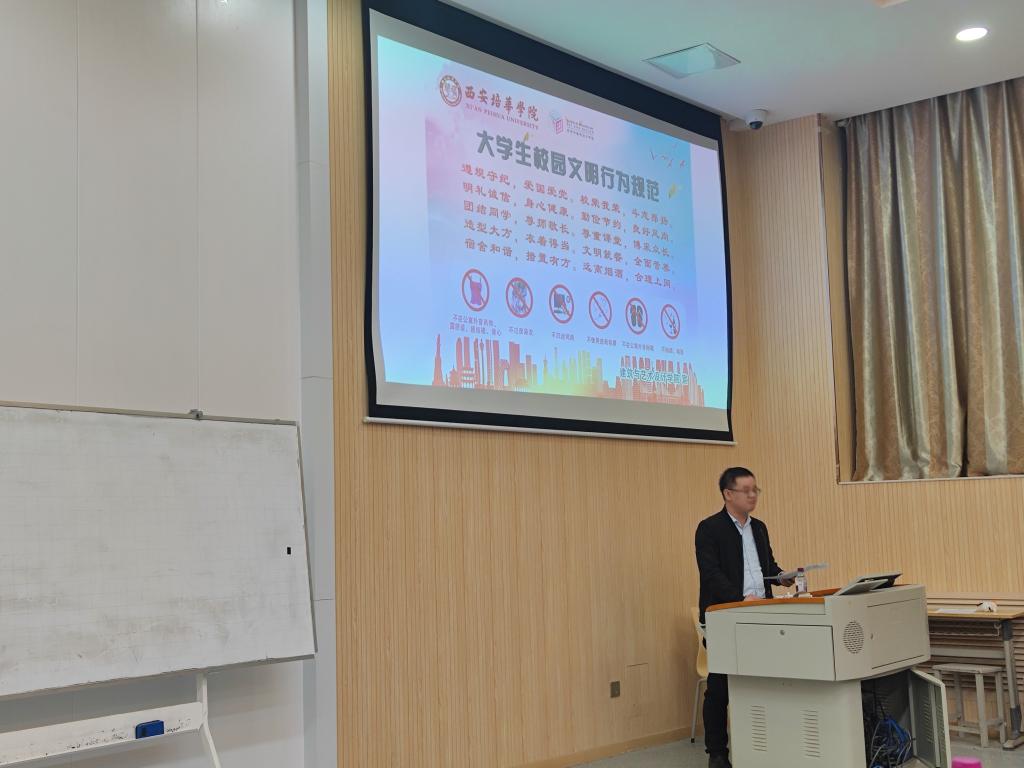活动中,长安分局常宁路派出所民警刘洋同志首先在3505教室通过各类实际案例故事讲解和图片、视频等形式生动形象地分享了有关电信诈骗、校园消防安全、大学生日常矛盾冲突、网络安全、国家安全、民族团结等与大学生生活息息相关的主题,同时结合我校实际情况,深入浅出地教授学生们如何辨别危害国家安全的犯罪行为,在坚决不触碰法律红线的前提下,正确并规范使用网络媒介等,积极教育引导学生养成文明行为,提高安全意识,维护国家安全。民警利用通俗易懂的语言为同学们上了一堂生动的安全文明课,收到师生们的一致好评。