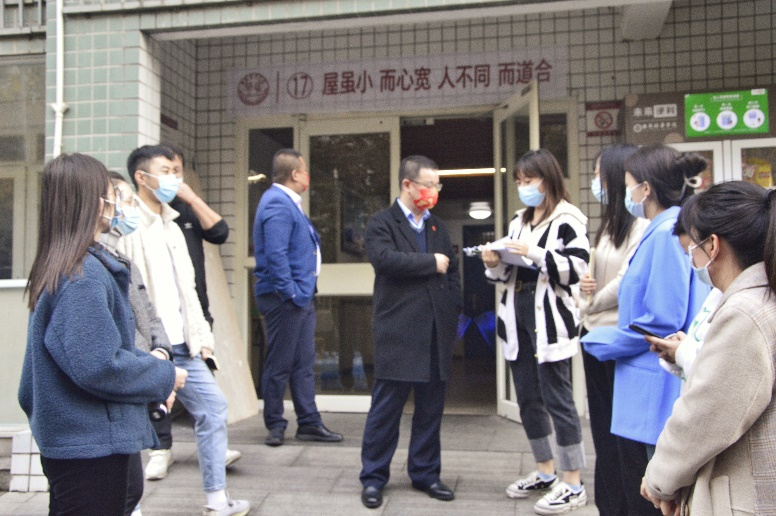 大学生社区是同学们思想碰撞、文化交流、生活休息、学业提升的重要场所,是高校“三全育人”的实践园地和大学生劳动教育的重要阵地。为巩固学生社区安全文明创建成果,践行劳动教育新理念,以劳树 德,以劳育人,促进学生德智体美劳全面发展,学校将于2022年 10 月 23 日 — 2022年 11 月4日开展爱国卫生运动暨寝室劳动教育活动。2022年10月27日,建筑与艺术设计学院党委书记兼行政副院长王飞,党委副书记南斌红,团委书记李煜以及辅导员以及各辅导员老师们组成的检查小组开展了对4号公寓和17号公寓的安全教育和卫生大检查活动。