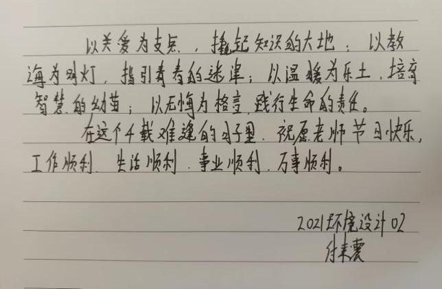 2022年9月10日,恰逢中秋节与教师节同期而至,为欢庆“双节”,建筑与艺术设计学院学生会于2022年9月10日开展“九月谢师恩,礼颂中秋月”线上送祝福活动。同学们积极参与,通过线上留言、手写祝福、装饰创意等形式送上对老师们的祝福,写下自己的心里话。