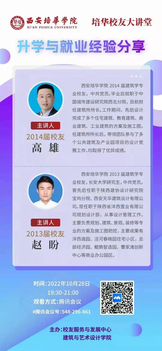 为进一步加强学院就业指导工作,帮助学生了解就业形势,提高学生自身综合素质与就业竞争力,促进我院学生更加充分和更高质量就业,10月28日,我院成功举办“升学与就业经验分享”专题分享会。本次分享会邀请到我院2014届毕业生高雄以及2013届毕业生赵盼通过线上会议为建筑类专业同学们分享在求职和就业过程中的宝贵经验。