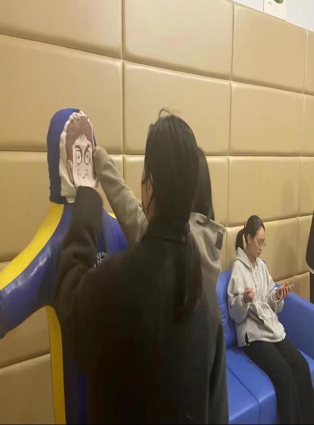 通过这次参观和体验,让我知道了我们大学生舒缓压力的方式不止有听歌、看电视、打游戏,我们还可以做沙盘游戏,和假人来一场摔跤...坏情绪需要一个宣泄口,否则就会在身体里堆积,严重时甚至影响我们的身体健康。大学生们都应该利用好学校为我们提供的心理疗愈场所,让自己心理更健康,学习更顺利,生活更美好。