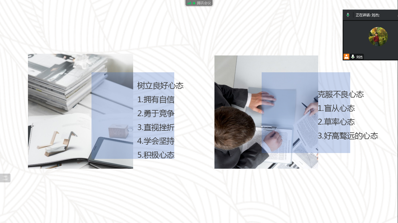 本次讲座主要围绕高校本专业就业形势;学生个人及专业的定位;专业的就业方向、岗位及前景分析;学生现阶段应注重培养的专业素养;行业企业大环境对自身的职业规划发展方向的影响;求职的准备以及求职技巧等几个方面展开。