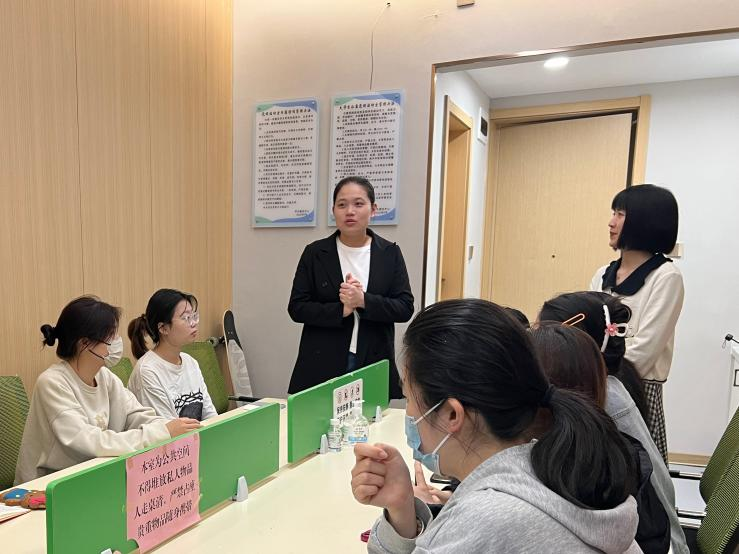 为秉持学校“以人为本、以德为先”的教育理念,促进学生主动关注和维护自身的心理健康,帮助同学们更好地探索自我、悦纳自我,6月2日,建筑与艺术设计学院学生潜能发展辅导站艺小芽工作站与学生潜能发展中心联合举办心理团辅进社区活动,学生潜能发展中心王旭老师和艺小芽工作站负责老师丁亚莉共同参与了本次活动。本次团体辅导以“角色对对碰--那些你没察觉的时间去向”为主题,通过本次团体辅导帮助同学们舒缓情绪,以更加积极向上的心态面对大学生活。