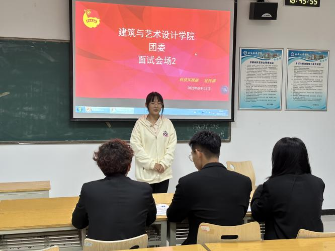 2023年9月25日,金秋十月,碧空如洗,凉爽舒适。一年好景君须记,最是橙黄橘绿时的美好时节,学长与萌新们相聚在建筑与艺术设计学院,共同来见证“团学青面试会场”的精彩时刻!
