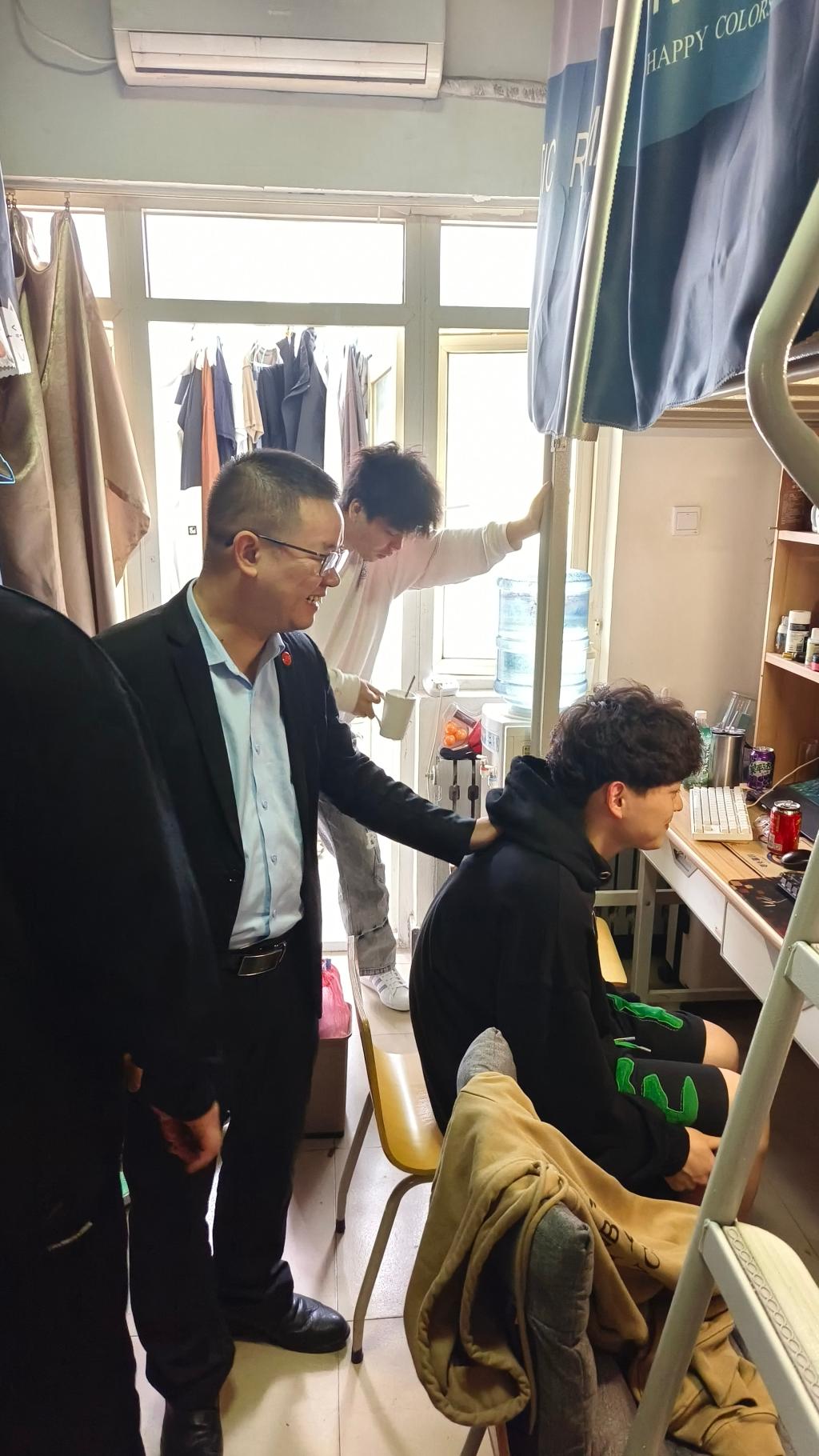 针对部分寝室物品摆放杂乱、卫生打扫不到位等问题,辅导员老师及党员志愿者们积极协助同学打扫卫生、整理内务,共同营造一个舒适整洁的居住环境。他们还亲切地与同学们交流,了解同学们的学习生活情况,强调合理安排学习时间,平衡学习和生活。同时,他们还关心同学们的身心健康和财产安全,提醒大家注意遵守疫情防控要求,按时归寝,规范作息。对于同学们反映的问题和困难,也给予了及时的解决和帮助。