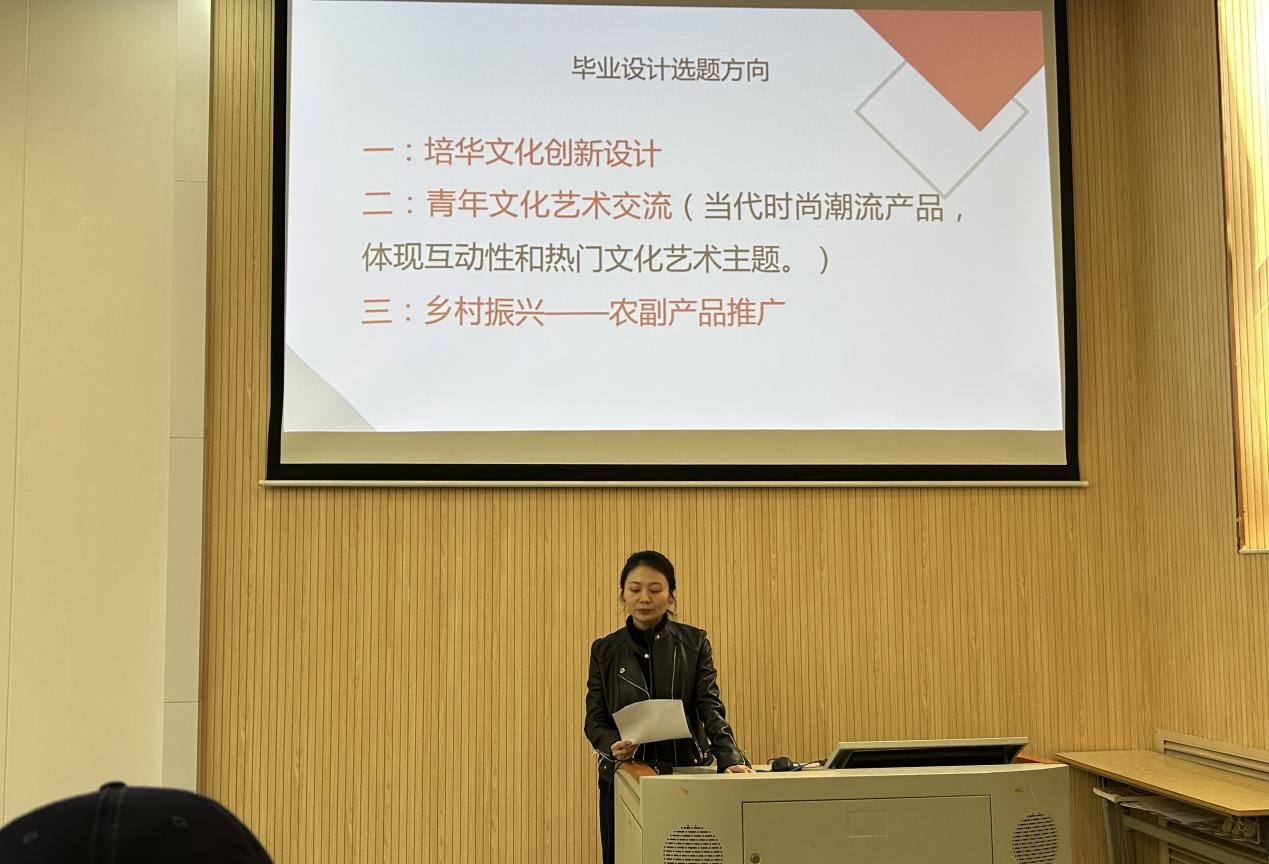 同时,专业带头人张予阳老师详细讲解了2024届毕业设计的目的和意义。毕业设计是高等院校专业实践教学的重要环节与课程,是一项全面运用专业知识和专业技能开展的综合性设计实践活动。视觉传达设计专业毕业设计是学生专业素质和专业实践能力全面提升的重要途径,也是对学生本科四年专业知识学习的综合性考查和总结。整体毕业设计最终的表现形式要具“新时代、新国潮、新文青、新消费”的创意策划理念,注重与时代现象的紧密结合,注重前瞻性思维的培养,注重设计服务于生活等。