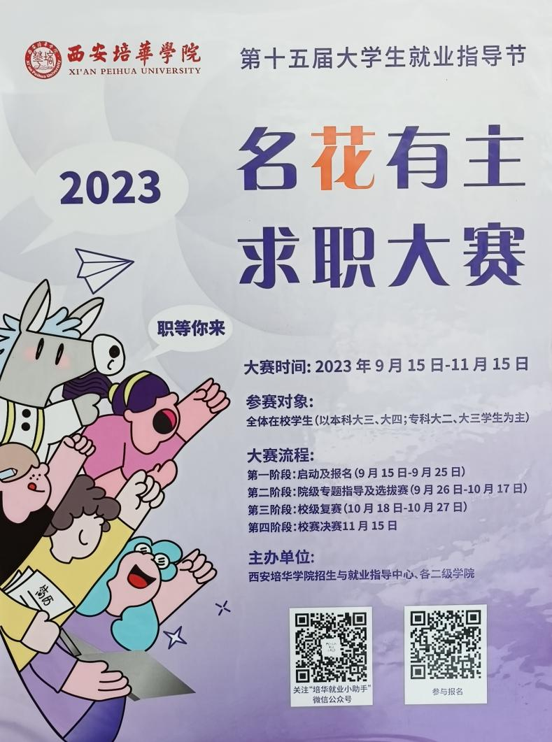 1.报名时间:2023年9月15日-9月25日。报名需登录西安培华云就业信息网(https://peihua.bysjy.com.cn)及“云就业”、“培华就业小助手”微信公众号【名花有主】端口进行报名。
