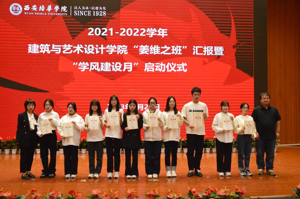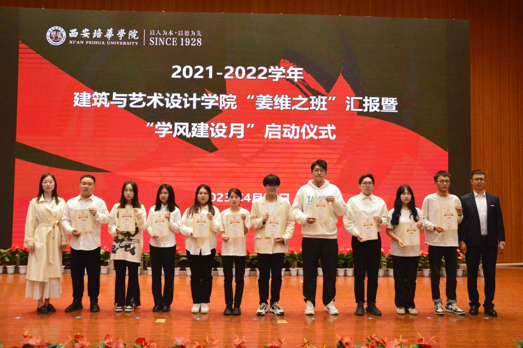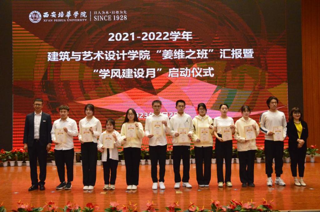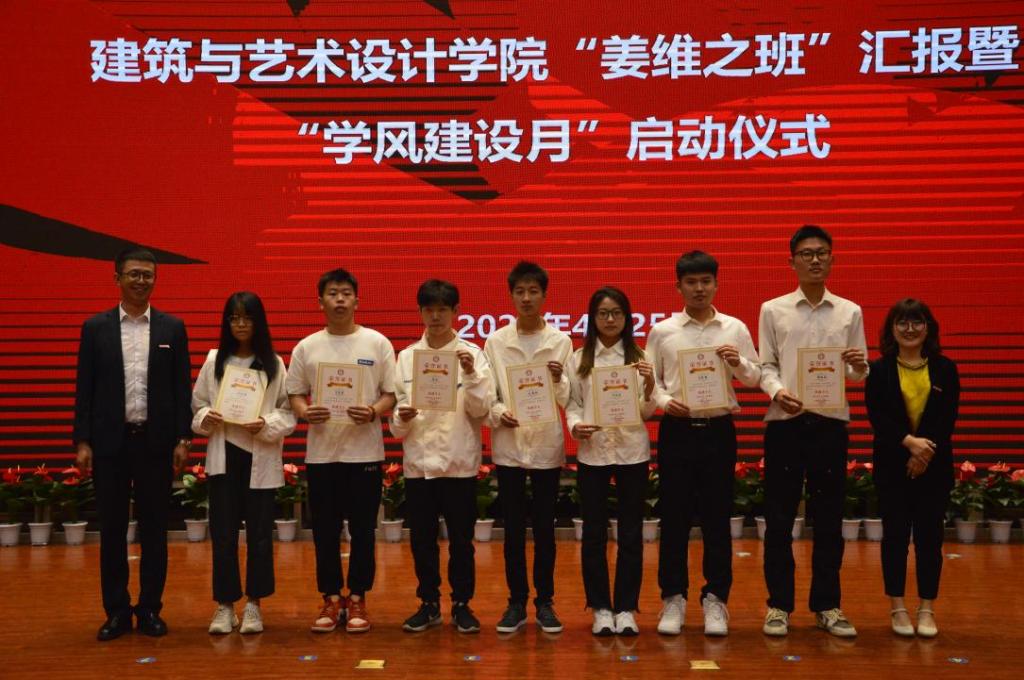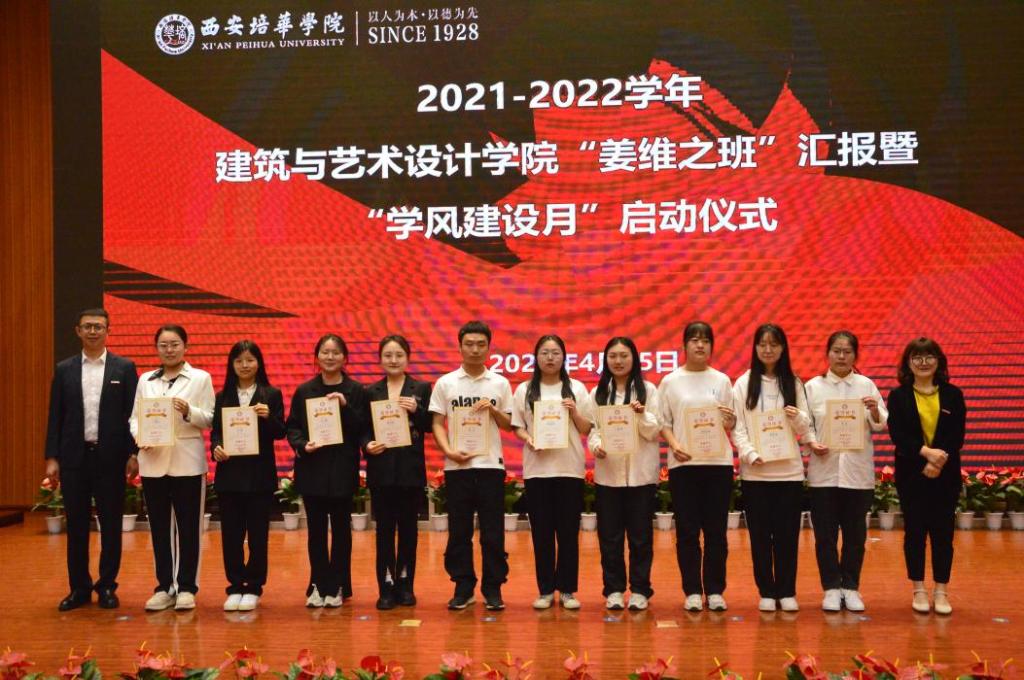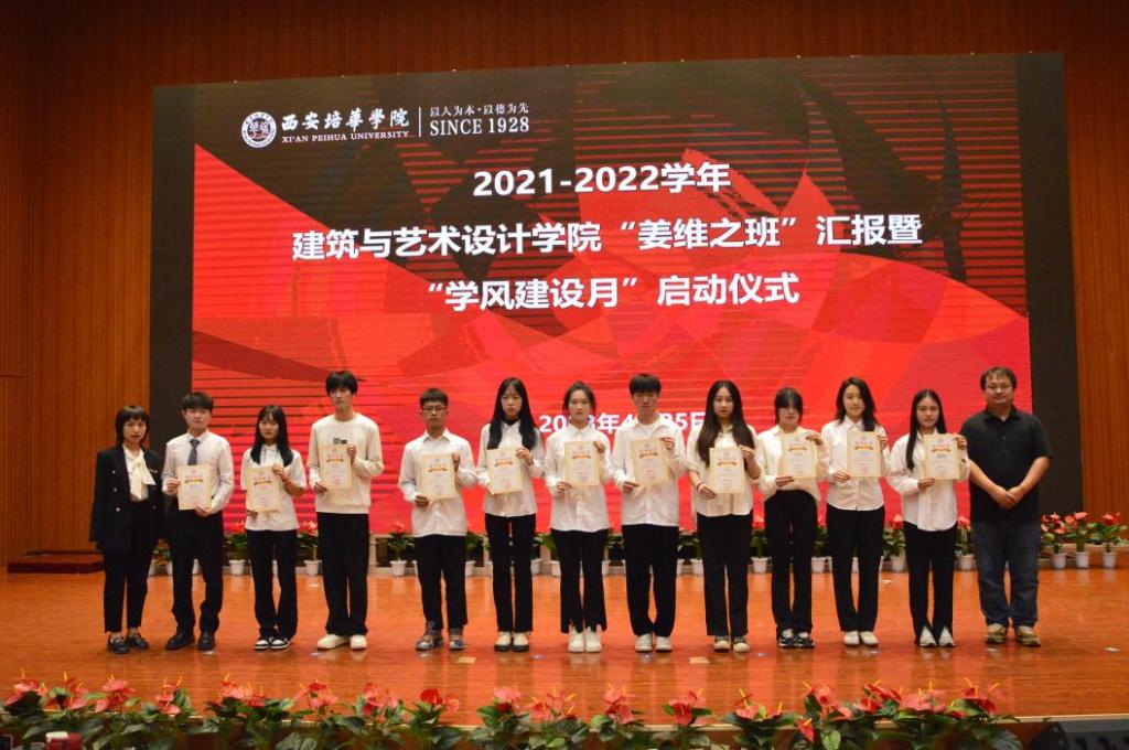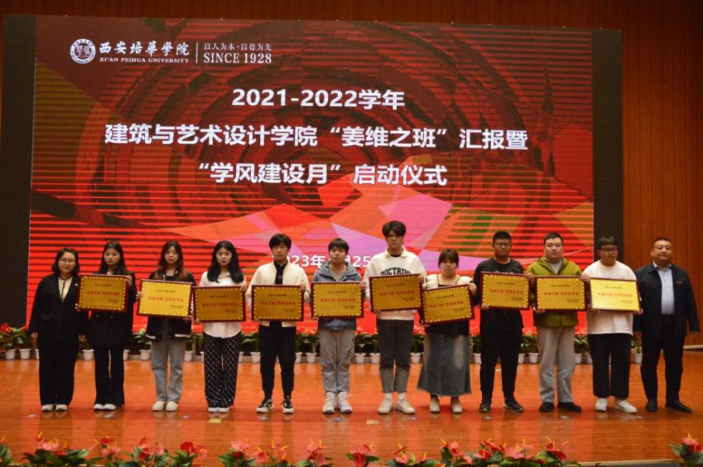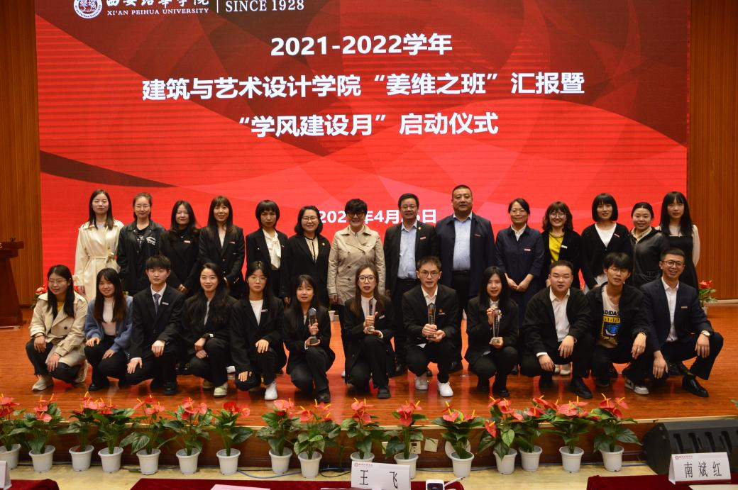 为进一步落实立德树人根本任务,持续推进我院“姜维之班”创建工作,引导各班形成爱党、爱国、爱校、学风浓厚的良好班级氛围,建筑与艺术设计学院于4月25日下午19点在维之图书馆报告厅举行2021-2022学年“姜维之班”创建成果汇报暨“学风建设月”启动仪式。建筑与艺术设计学院常务副院长徐莹,建筑与艺术设计学院党委书记兼行政副院长王飞,建筑与艺术设计学院党委副书记南斌红,建筑与艺术设计学院院长助理刘清颖,建筑与艺术设计学院工程造价系主任杨锦,建筑与艺术设计学院团委书记坚强,建筑与艺术设计学院学生干事崔菲、黄鑫,工程造价专业教师宋胜男以及全体辅导员和学业导师代表出席会议。仪式由吕文静、刘子义主持。
