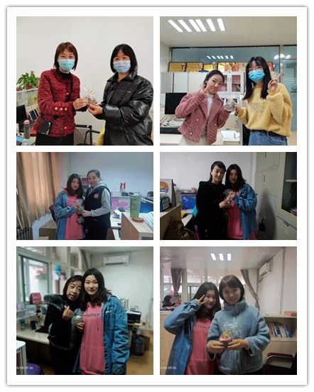 同学们将精美的小礼品进行包装,逐一前往办公室送至各位女老师手里,在送上礼品的同时也不忘真诚的道一声“老师,节日快乐”。老师们看着精美的礼品和可爱的同学们露出了幸福的笑容,办公室充满了欢声笑语。