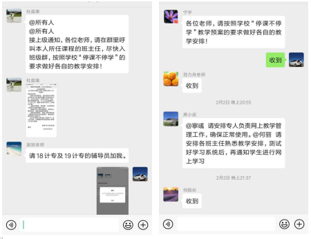 老师们积极加入学生班级群与学生互动交流,指导学生制定合理的学习计划,耐心解答学生提出的问题,及时答疑解惑。