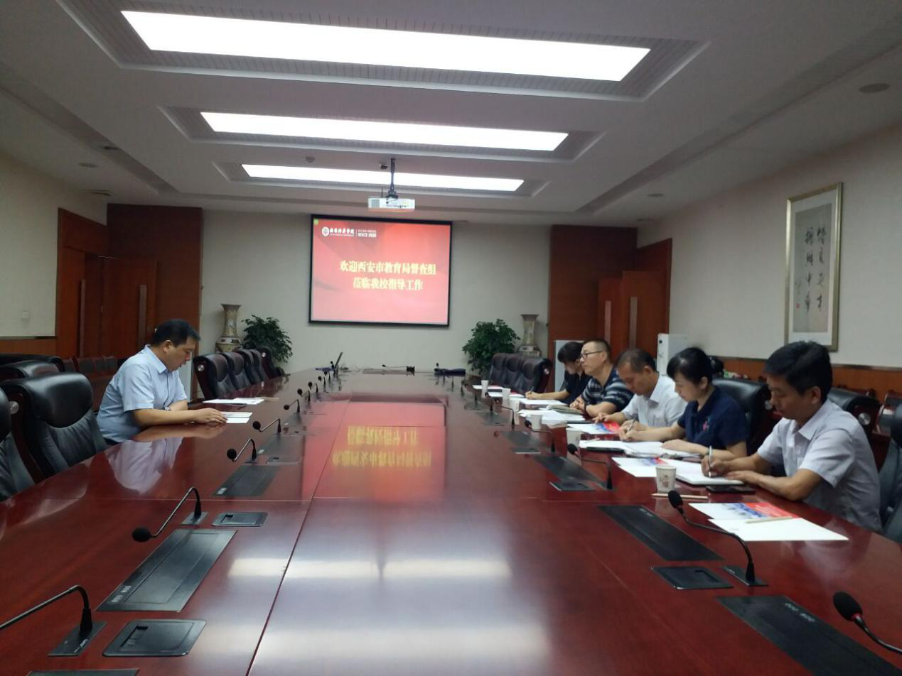 2019年8月16日,西安市教育局基教一处副处长雷大鹏、体卫艺处副处长崔江红、雁塔区教育局副局长徐三雄、职成科科长高苑等领导一行对我校教育脱贫攻坚、暑期招生工作及校园安全进行检查指导,我校副校长席小武、何丽迎接检查。
