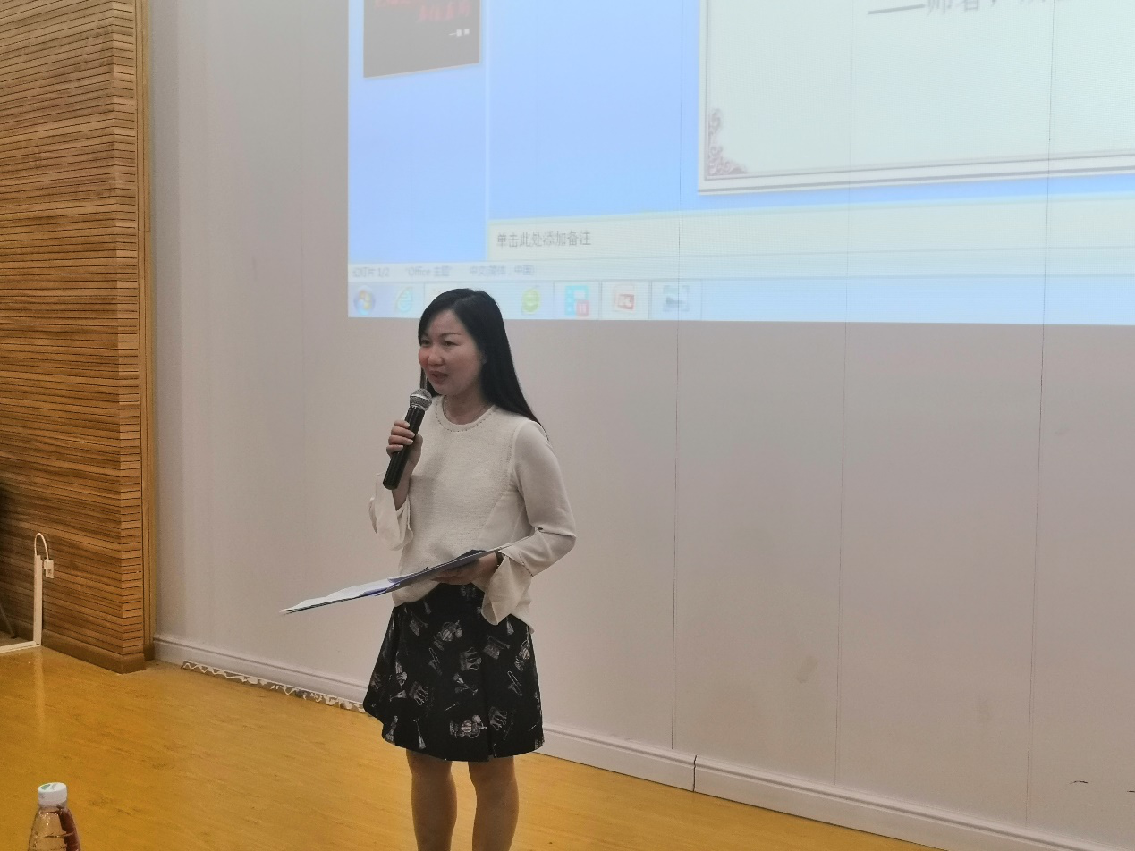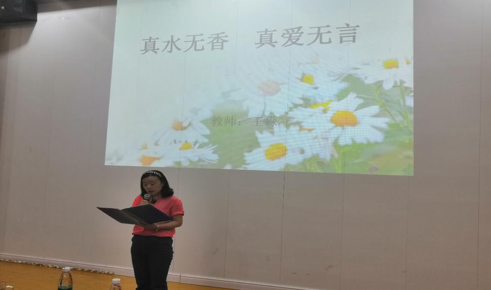 最后一位是王冰老师,她强调了初心的重要,并引用了习近平总书记在北京大学座谈时所引用的一句诗“千磨万击还坚劲,任尔东南西北风”。她说道:“在当今物欲横流的社会,我们要坚守住自己的初心,从小事做起,从自我做起,以高尚的人格感染人,以整洁的仪表影响人,以和蔼的态度对待人,以丰富的学识引导人,以博大的胸怀爱护人。只有这样,学生才能 ‘亲其师,信其道’”!