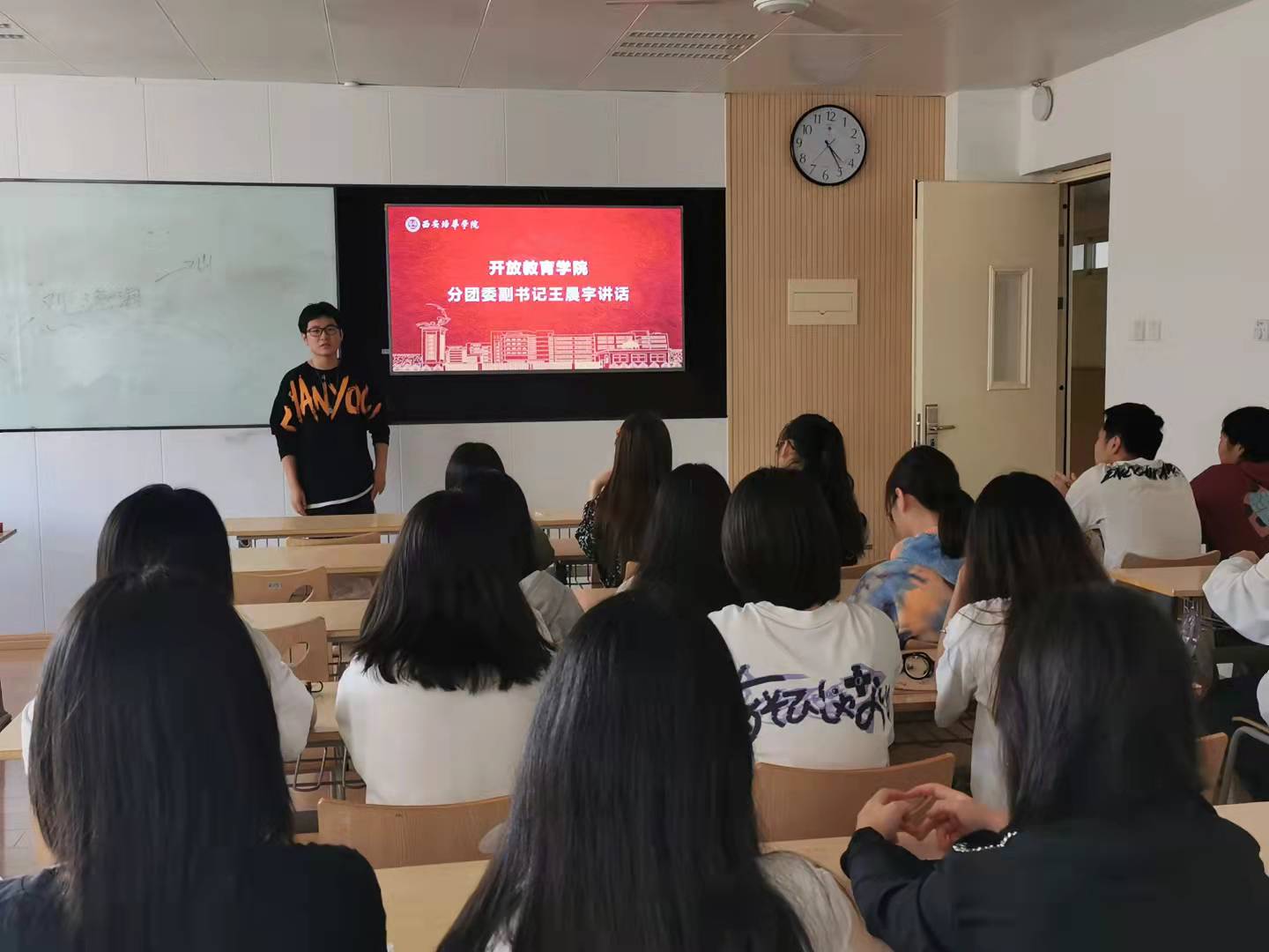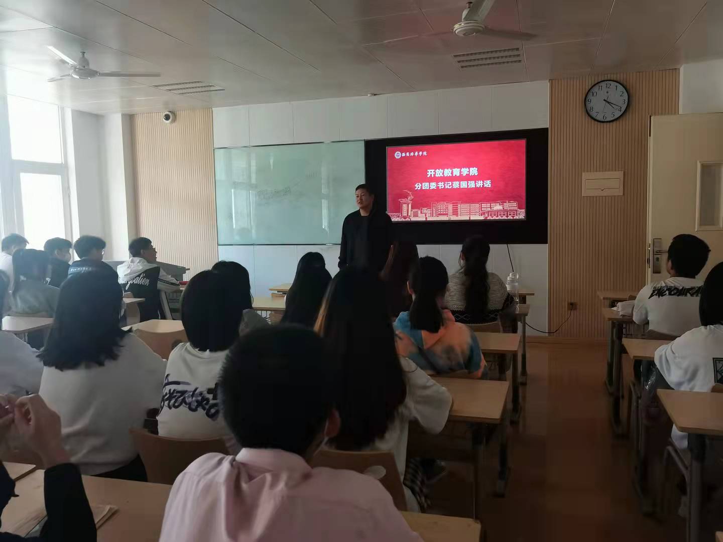 为进一步提高我院共青团员的政治觉悟,培养青年爱党爱国情怀,深入学习习近平总书记在庆祝中国共产党成立100周年大会上的讲话精神,深切回顾中国共产党百年奋斗的光辉历程,2021年9月28日,开放教育学院分团委在博远楼2407教室开展了“学书记讲话 做时代青年”主题团日活动。