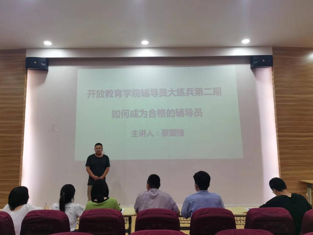 为进一步加强我院辅导员队伍建设,切实提高辅导员的综合能力,加强辅导员之间的互相沟通和交流,提升学院辅导员队伍的凝聚力和向心力,我院开展了开放教育学院第二期辅导员大练兵活动,辅导员蔡国强老师进行分享,我院全体辅导员参会。