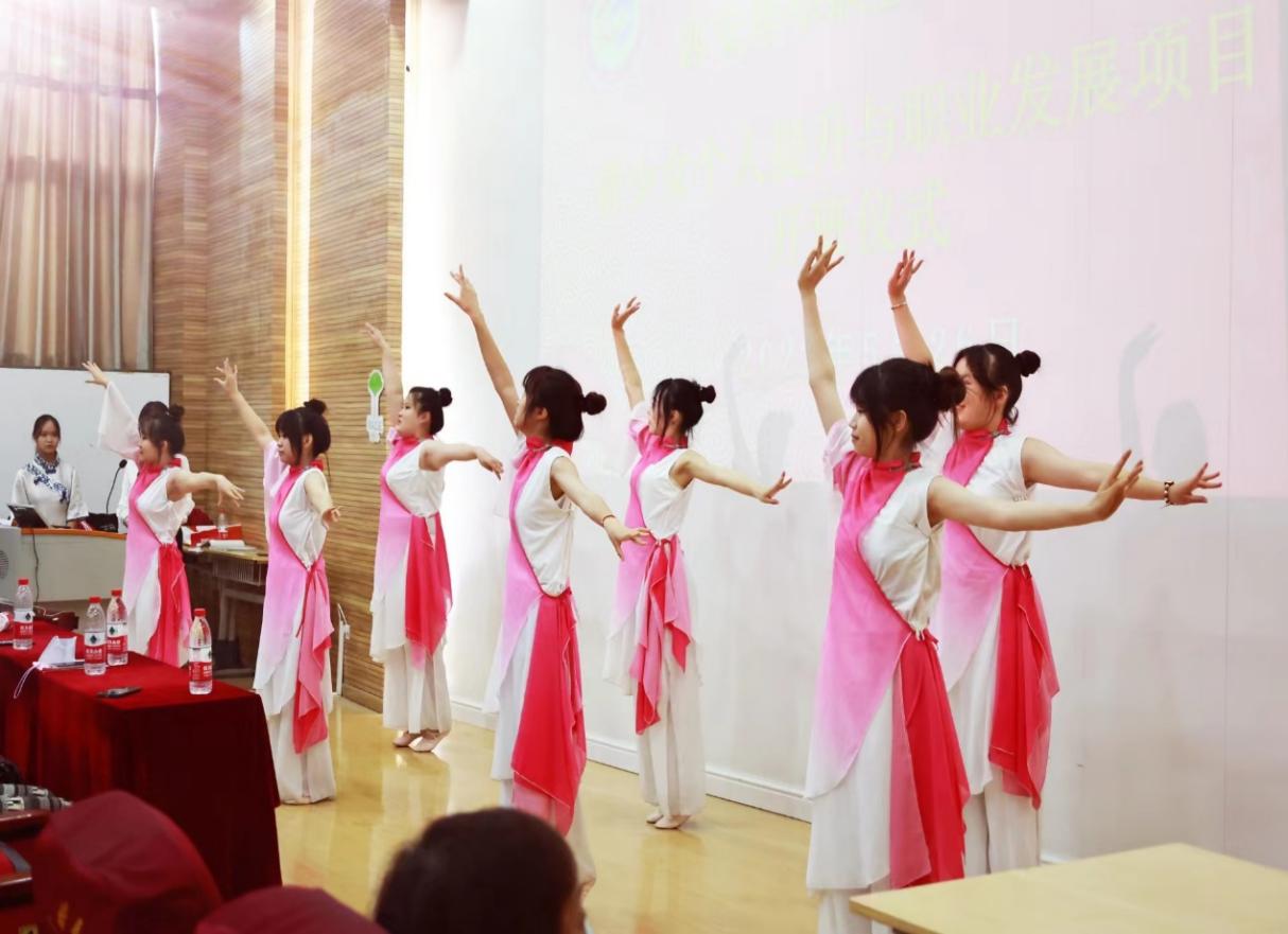 开班仪式上,同学们还表演了唯美的古风舞蹈,优美的舞姿和空灵的音乐结合在一起,形成了一幅引人入胜的画卷,同学们宛如一个个舞动的精灵在翩翩起舞,展现出自信、鼓励、美丽的微笑。引起了现场观众的阵阵好评和赞叹!