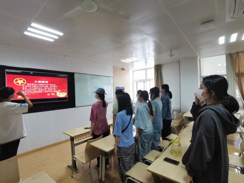 大会最后,何泽晨同学带领大家重温入团誓词,熟悉又庄严的誓词提醒着在场的每一位团员青年:铭记团员使命,不忘入团初心。