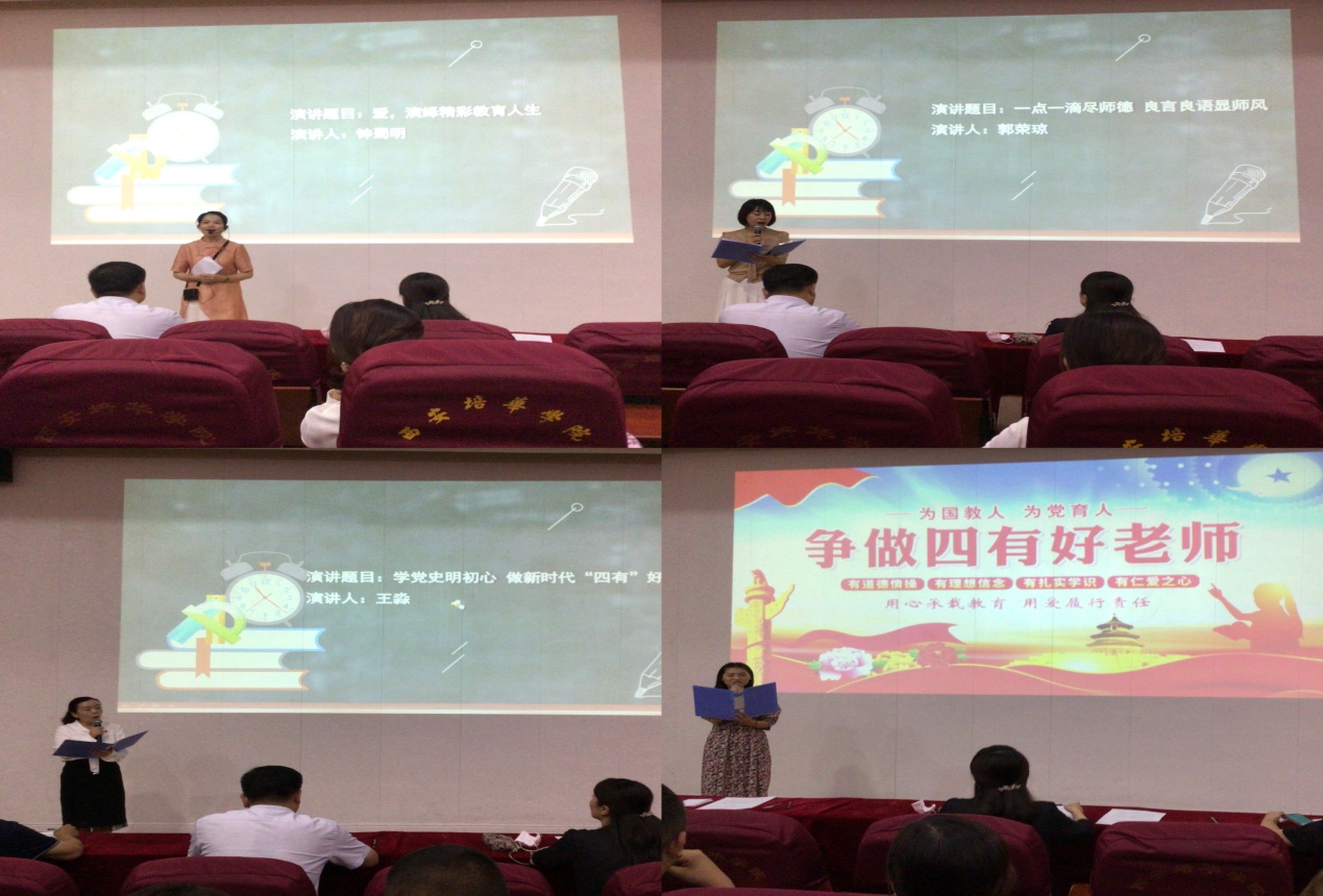 我院党支部共19人以增强党员干部“四个意识”,争做“四有”好老师,实现“做真教育,办美丽学校”的美好愿景为己任赴赛。老师们紧紧围绕主题,用鲜活感人的事例、激情洋溢的演讲,表达了对教育事业的热爱,阐述了对教学工作以及师德师风建设的深刻认识。一个个感人肺腑的亲身经历,一段段发自内心的深情表白,产生了现场强烈的共鸣!