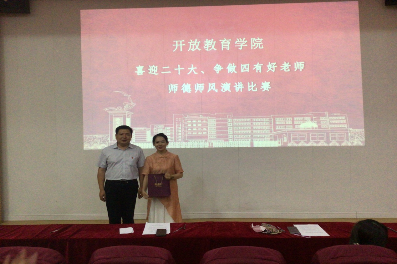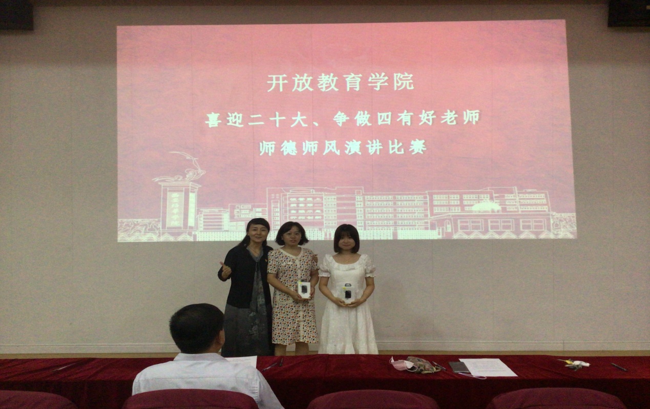为了迎接党的二十大召开,进一步增强党员干部“四个意识”,争做“四有”好教师,开放教育学院党支部于2022年6月27日在格物楼J102开展了喜迎“二十大”争做“四有”好老师”师德师风专题演讲比赛。开放教育学院党支部书记罗永辉、院长席小武、副院长宁宇参加了活动,比赛活动由党务干事杜苗果老师主持。