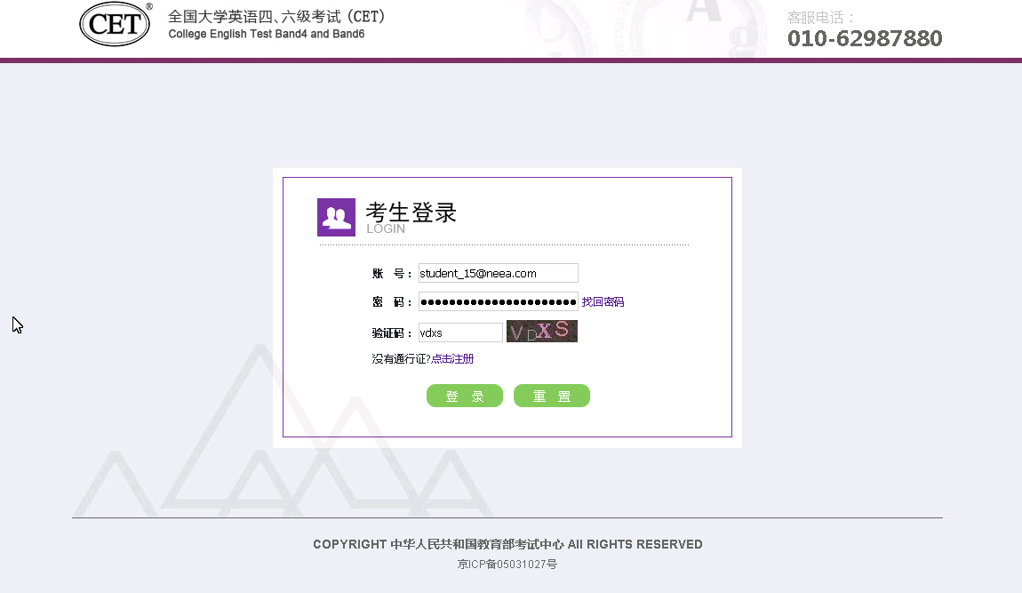 5. CET考试前的所有操作都在本系统进行,包括报名、缴费、打印准考证。